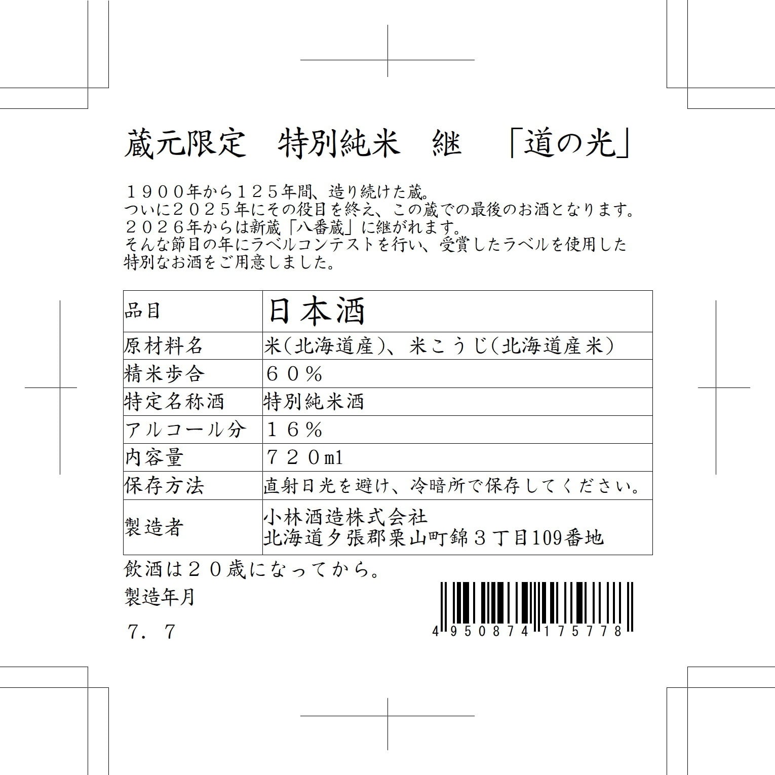 これからも、小林酒蔵の歴史は続いていく。そんな思いがこもった作品です。